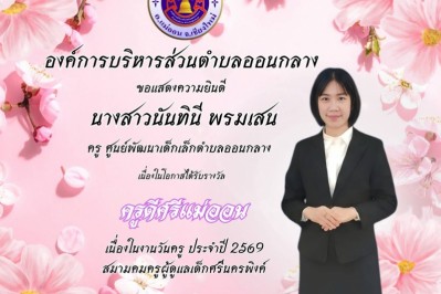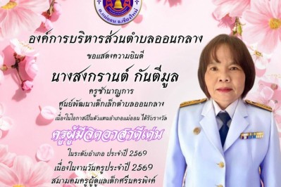 อบต.ออนกลาง ขอแสดงความยินดี นางสงกรานต์ กันตีมูล ครูชำนาญการ ศพด.ตำบลออนกลาง
