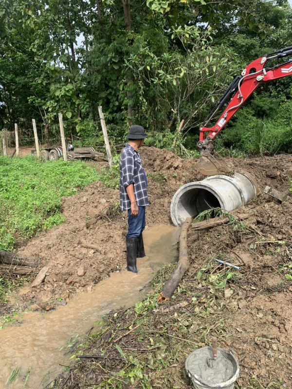 2.สระเก็บน้ำห้วยหินหลวง บ้านป่าตันใต้ หมู่ที่ 5 ปริมาณน้ำล้นสระเก็บน้ำ เข้าท่วมพื้นที่การเกษตร คาดว่าสาเหตุมาจากมีสิ่งกีดขวางท่อระบายน้ำ ทำให้น้ำไม่สามารถระบายออกจากสระได้ โดยขณะนี้ระดับน้ำท่วมปิดท่อระบายน้ำ ทำให้เป็นอุปสรรคในการแก้ไขปัญหา หากระดับน้ำลดลง จะรีบดำเนินการแก้ไขกำจัดสิ่งกีดขวางท่อระบายน้ำ ให้น้ำไหลออกจากสระเก็บน้ำได้โดยสะดวก เพื่อลดปริมาณน้ำในสระ