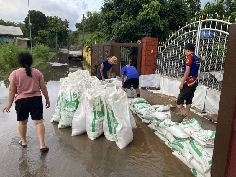 4. สนับสนุนกระสอบ และทราย เพื่อวางกั้นน้ำ ป้องกันน้ำท่วมเข้าบ้านเรือนประชาชน บ้านแม่เลน หมู่ที่ 2 ซอย 2