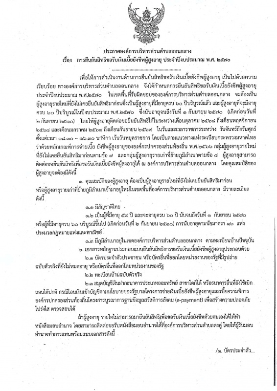 #ประชาสัมพันธ์การยืนยันสิทธิเพื่อขอรับเงินเบี้ยยังชีพผู้สูงอายุ ปีงบประมาณ 2570