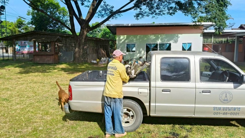 เข้าพื้นที่ เพื่อเก็บขนของเสียอันตรายในพื้นที่ตำบลออนกลาง