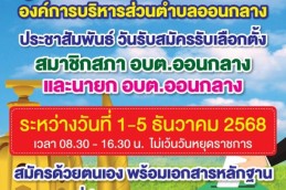 ขอประชาสัมพันธ์เชิญชวนประชาชนที่สนใจสมัครรับเลือกตั้งสมาชิกสภาอบต.ออนกลาง และนายกอบต.ออนกลาง