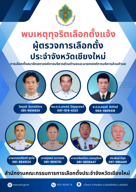>>วันนี้ วันที่ 4 ธันวาคม 2568 เวลา13:00 น. ศูนย์ประสานงานการเลือกตั้ง อบต.ออนกลาง ให้การต้อนรับ พันตำรวจเอก อดุลย์ กัปกัลป์ ผู้ตรวจการการเลือกตั้ง ประจำจังหวัดเชียงใหม่ ได้ให้เกียรติตรวจเยี่ยมการเตรียมความพร้อมในการจัดการเลือกตั้ง ของศูนย์ประสานงานการเลือกตั้งอบต.ออนกลาง และให้คำแนะนำในการจัดการเลือกตั้ง และ การสมัครรับเลือกตั้งฯ ให้เป็นไปได้ความเรียบร้อย สุจริต และเที่ยงธรรม