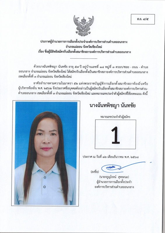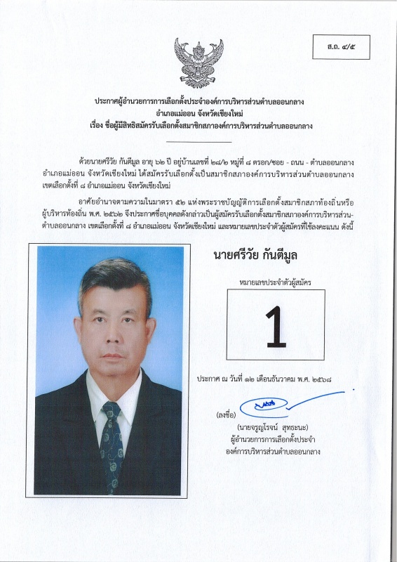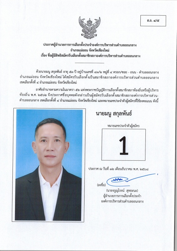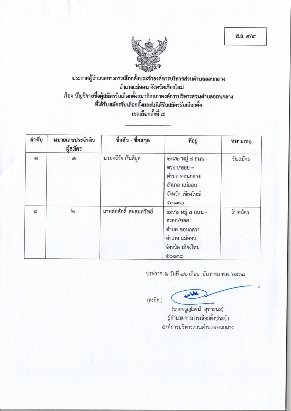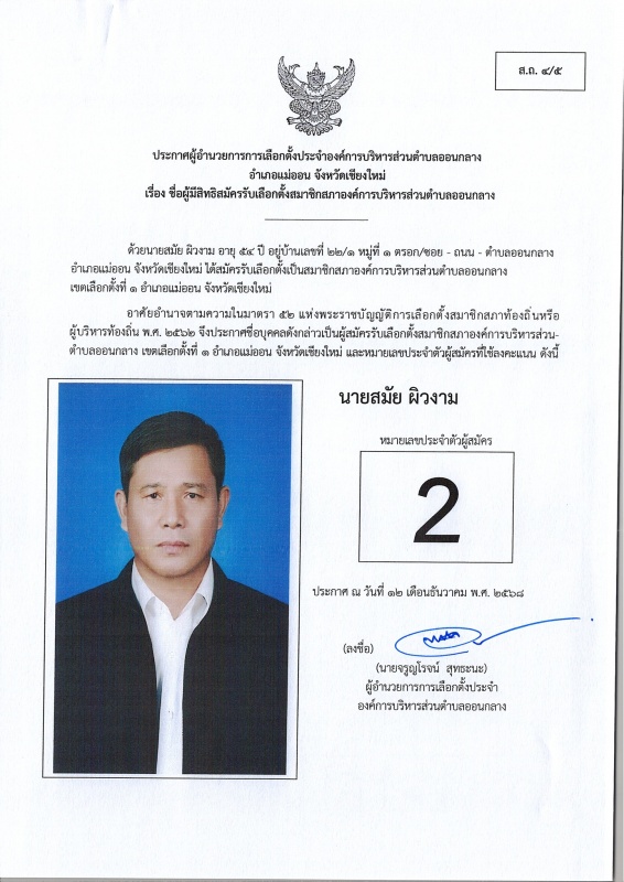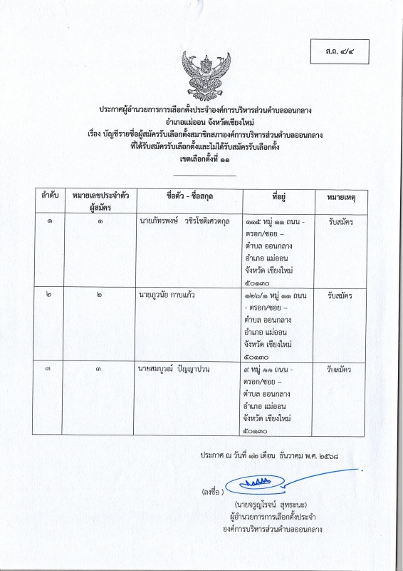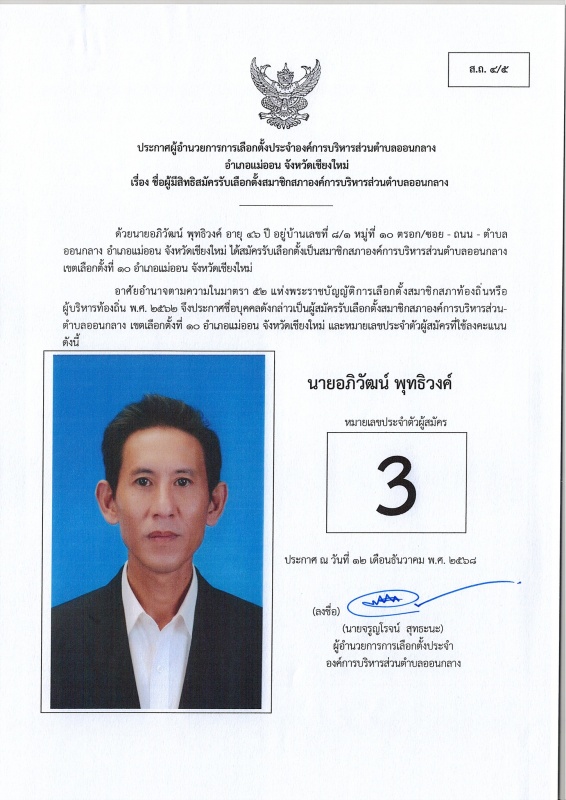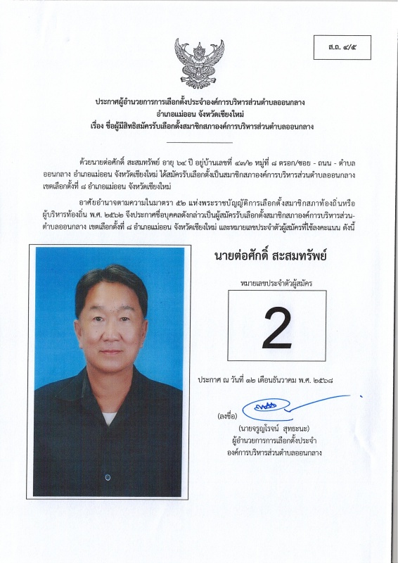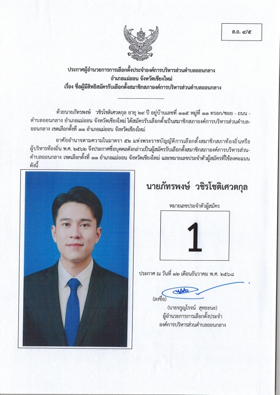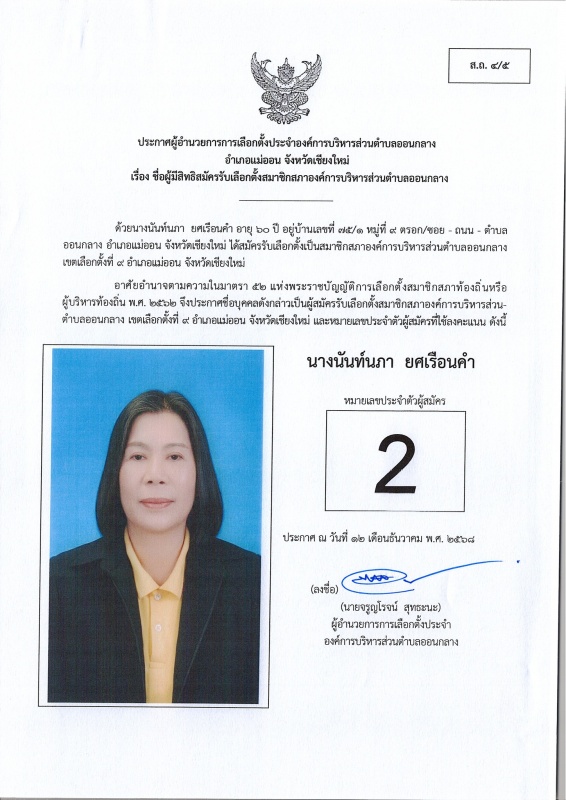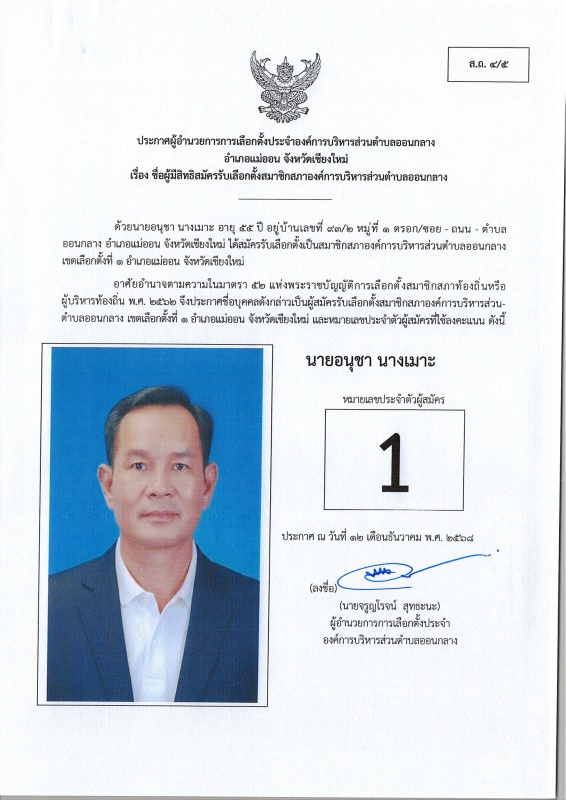 ประกาศชื่อผู้มีสิทธิสมัครรับเลือกตั้งฯ