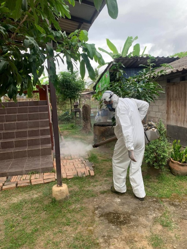 พ่นหมอกควัน เพื่อกำจัดยุงลาย ป้องกัน และควบคุมการแพร่ระบาดของไข้เลือดออก ม.8