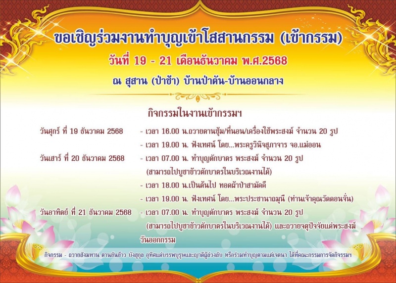 ได้สนับสนุนเข้าร่วมด้วยช่วยกัน พัฒนาสถานที่จัดเตรียมงานทำบุญเข้าโสสานกรรม (เข้ากรรม)