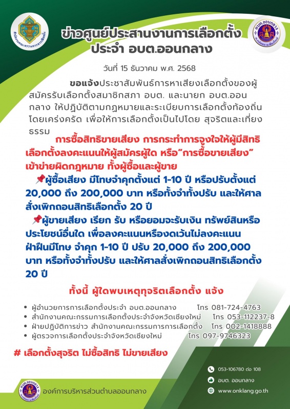 **หากท่านใดพบเหตุทุจริตการเลือกตั้ง สามารถติดต่อได้ตามหมายเลขภายในภาพ**