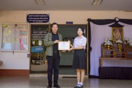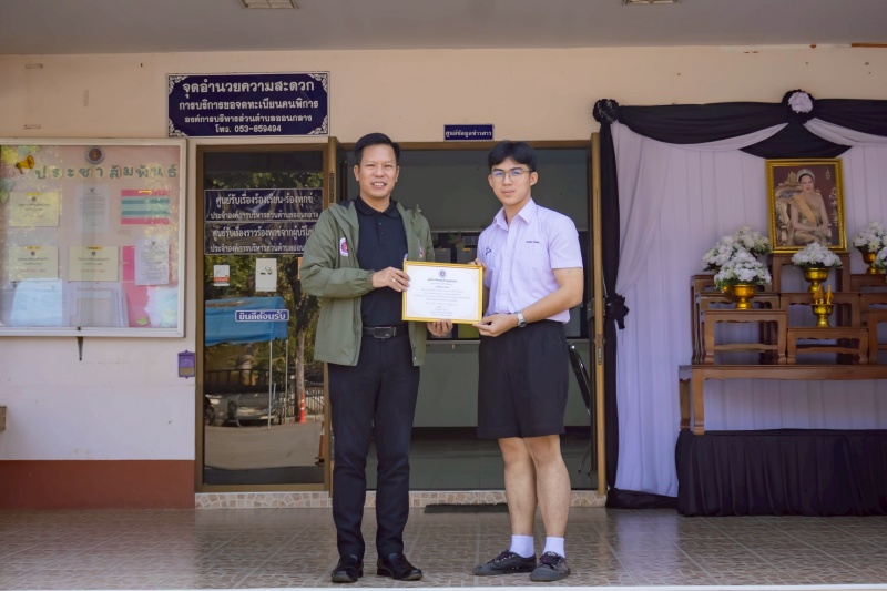 มอบเกียรติบัตรให้น้องๆ นักเรียนโรงเรียนแม่ออนวิทยาลัย "มีส่วนร่วมส่งเสริมประชาธิปไตย" ทำคลิปวีดีโอประชาสัมพันธ์เชิญชวนให้ประชาชนมาใช้สิทธิเลือกตั้งอบต.ออนกลาง