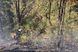 >>>รายงานสถานการณ์ ได้จัดกำลังเข้าพื้นที่ ประมาณ 10.00 น. แต่เนื่องจากจุดที่เกิดไฟ อยู่บนพื้นที่สูง ยากลำบากต่อการเข้าไปดับไฟ จึงได้ทำแนวกันไฟด้านล่าง เพื่อควบคุมและป้องกันไฟลุกลาม จนไฟสงบลงในเวลาประมาณ 13.30 น.