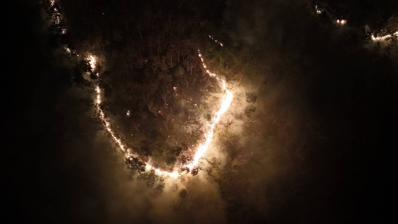 บินโดรน สำรวจพื้นที่มุมสูง พบกลุ่มไฟ บริเวณบ้านป่าไม้ หมู่ที่ 10