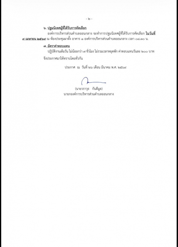 #ประกาศ องค์การบริหารส่วนตำบลออนกลาง