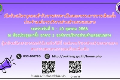 เปิดรับสมัครบุคคลเข้ารับการสรรหาเป็นคณะกรรมการการเลือกตั้ง ประจำองค์การบริหารส่วนตำบลออนกลาง