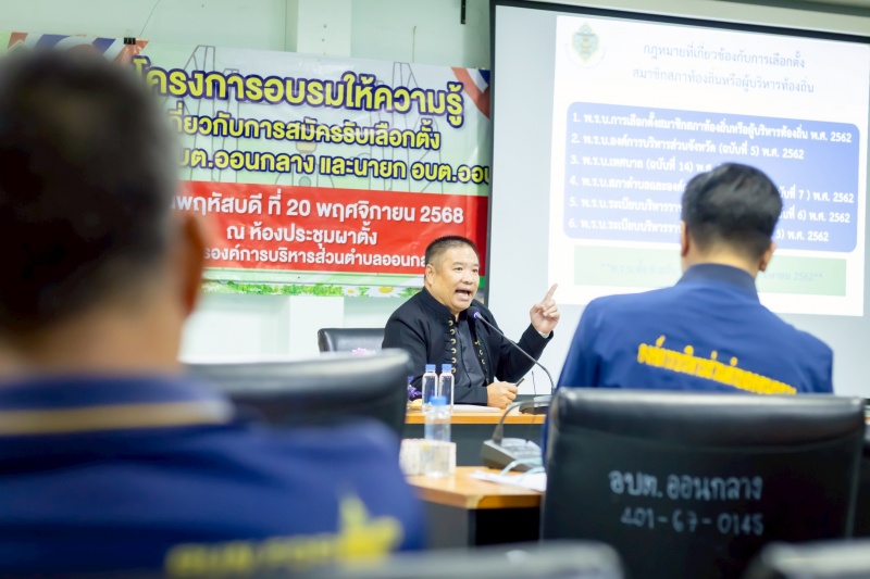 >>>วันนี้ วันที่ 20 พฤศจิกายน 2568 เวลา 08.30 น. ณ ห้องประชุมผาตั้ง ศูนย์ประสานงานการเลือกตั้งอบต.ออนกลาง ได้จัดอบรมให้ความรู้เกี่ยวกับการสมัครรับเลือกตั้งให้แก่ผู้ที่ประสงค์สมัครรับเลือกตั้งสมาชิกสภาอบต.ออนกลาง และนายกอบต.ออนกลาง โดยได้รับเกียรติจาก นายกฤษณ์ ไชยมาลา รองผู้อำนวยการสำนักงานคณะกรรมการการเลือกตั้งจังหวัดเชียงใหม่ เป็นวิทยากรบรรยายให้ความรู้ ในเรื่อง