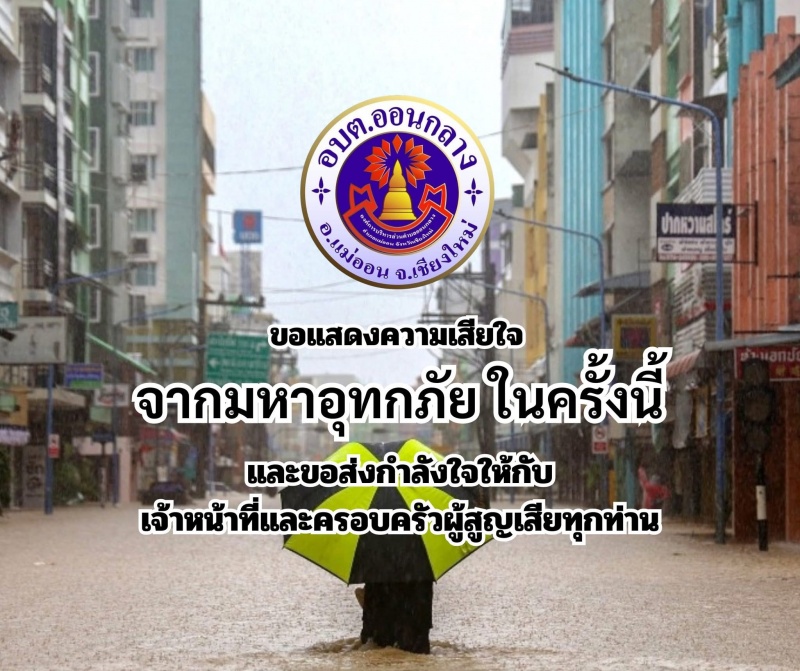 >>องค์การบริหารส่วนตำบลออนกลาง ขอแสดงความเสียใจกับเหตุการณ์มหาอุทกภัยในครั้งนี้ และขอส่งกำลังใจให้กับเจ้าหน้าที่ที่ปฏิบัติการช่วยเหลือและครอบครัวผู้สูญเสียทุกท่าน<<