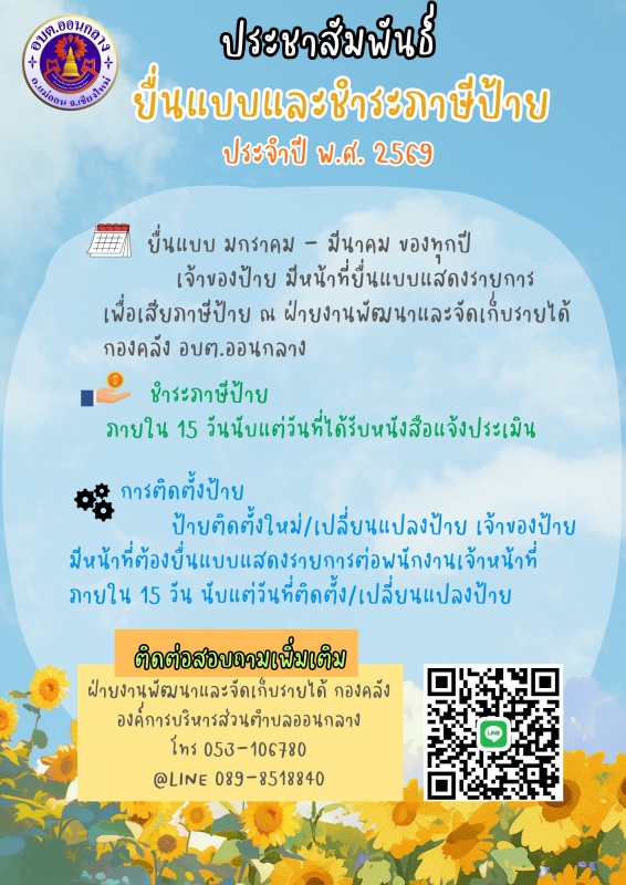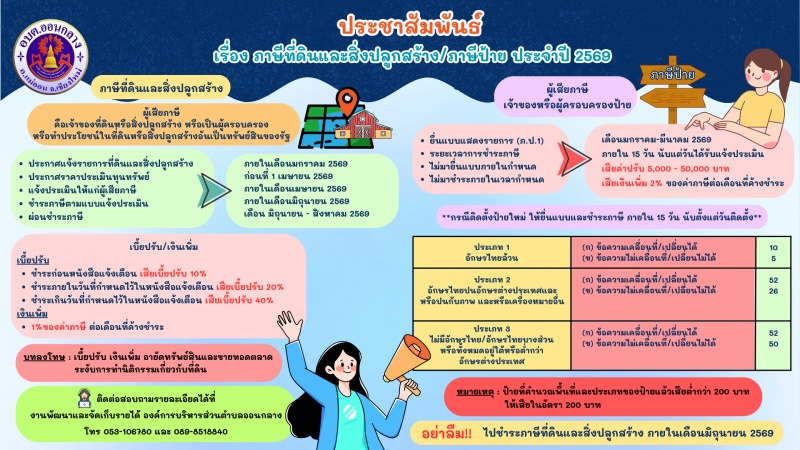 ประชาสัมพันธ์ภาษีที่ดินและสิ่งปลูกสร้าง และภาษีป้าย ประจำปี พ.ศ.2569