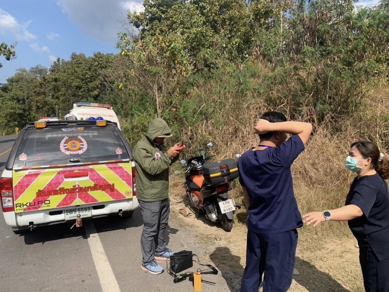 ได้รับแจ้งจาก ศูนย์กู้ชีพกู้ภัย อบต.ห้วยแก้ว ขอรับการสนับสนุน "ทีมกู้ชีพ-กู้ภัยอบต.ออนกลาง " เพื่อเข้าช่วยเหลือนักท่องเที่ยวขี่มอเตอร์ไซค์วิบากประสบอุบัติเหตุบริเวณอ่างห้วยบก