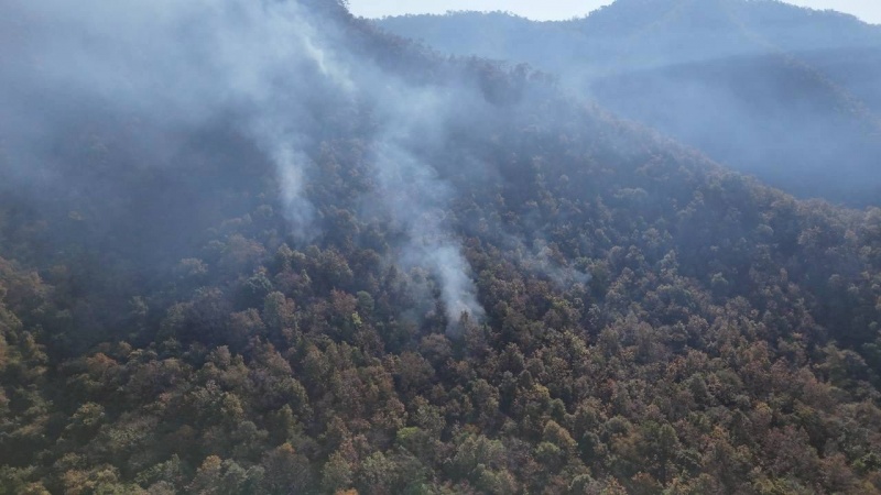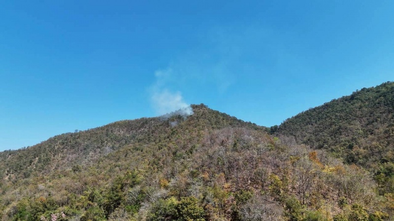 บินโดรน สำรวจพื้นที่มุมสูง พบกลุ่มควันบริเวณ หมู่ที่ 6 และ หมู่ที่ 8 ได้ควบคุม และดับไฟได้เรียบร้อยแล้ว