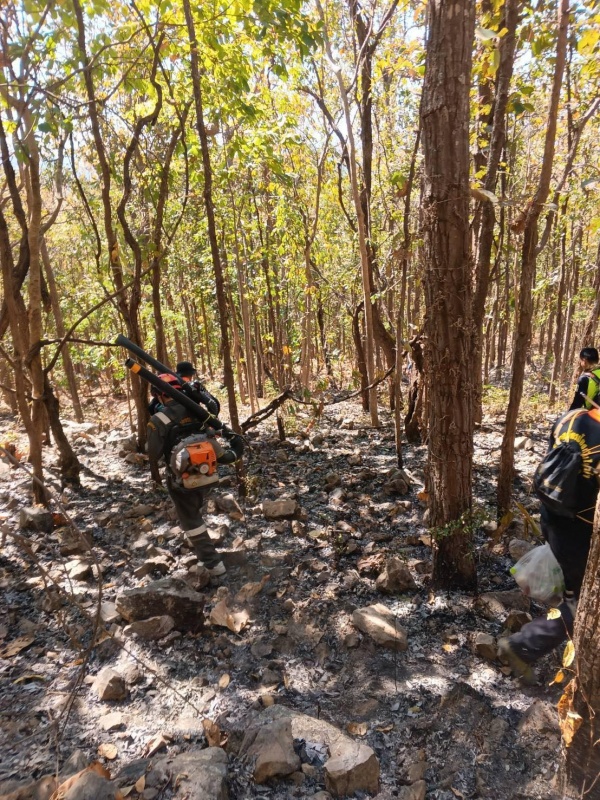 , ผู้ใหญ่บ้าน หมู่ที่ 6 และ หมู่ที่ 8 และอาสาสมัครดับไฟป่า อบต.ออนกลาง (ชุดแมงป่องไฟ) เข้าดับไฟป่า บริเวณป่าห้วยป่าไร่ หมู่ที่ 8 , หมู่ที่ 11 ต.ออนกลาง
