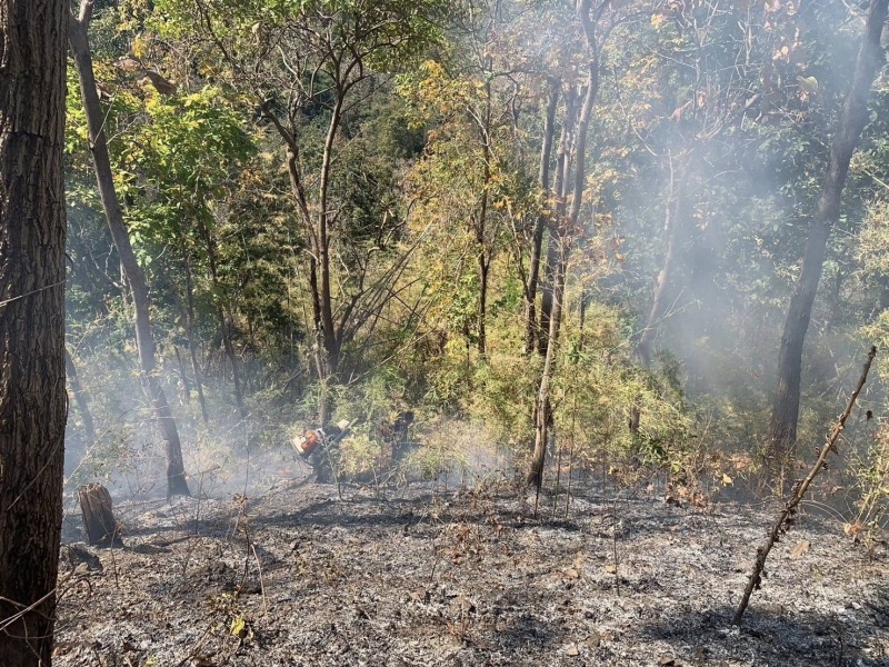 >>>รายงานสถานการณ์ ได้จัดกำลังเข้าพื้นที่ ประมาณ 10.00 น. แต่เนื่องจากจุดที่เกิดไฟ อยู่บนพื้นที่สูง ยากลำบากต่อการเข้าไปดับไฟ จึงได้ทำแนวกันไฟด้านล่าง เพื่อควบคุมและป้องกันไฟลุกลาม จนไฟสงบลงในเวลาประมาณ 13.30 น.
