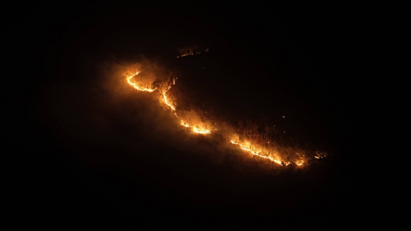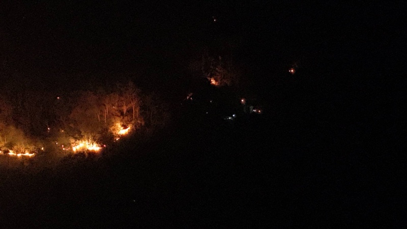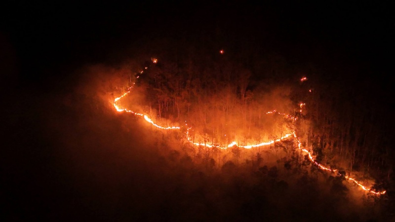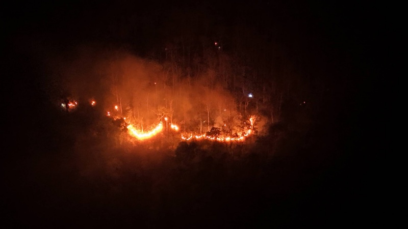 บินโดรน สำรวจพื้นที่มุมสูง พบกลุ่มไฟ บริเวณบ้านป่าไม้ หมู่ที่ 10